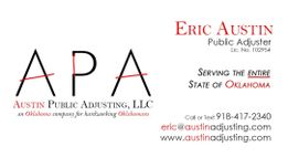 Eric Austin has been an insurance adjuster working for the insurance companies in Oklahoma for nearly 20 years. Now, as a public adjuster, he can apply his inside knowledge to help Oklahomans maximize their recovery.